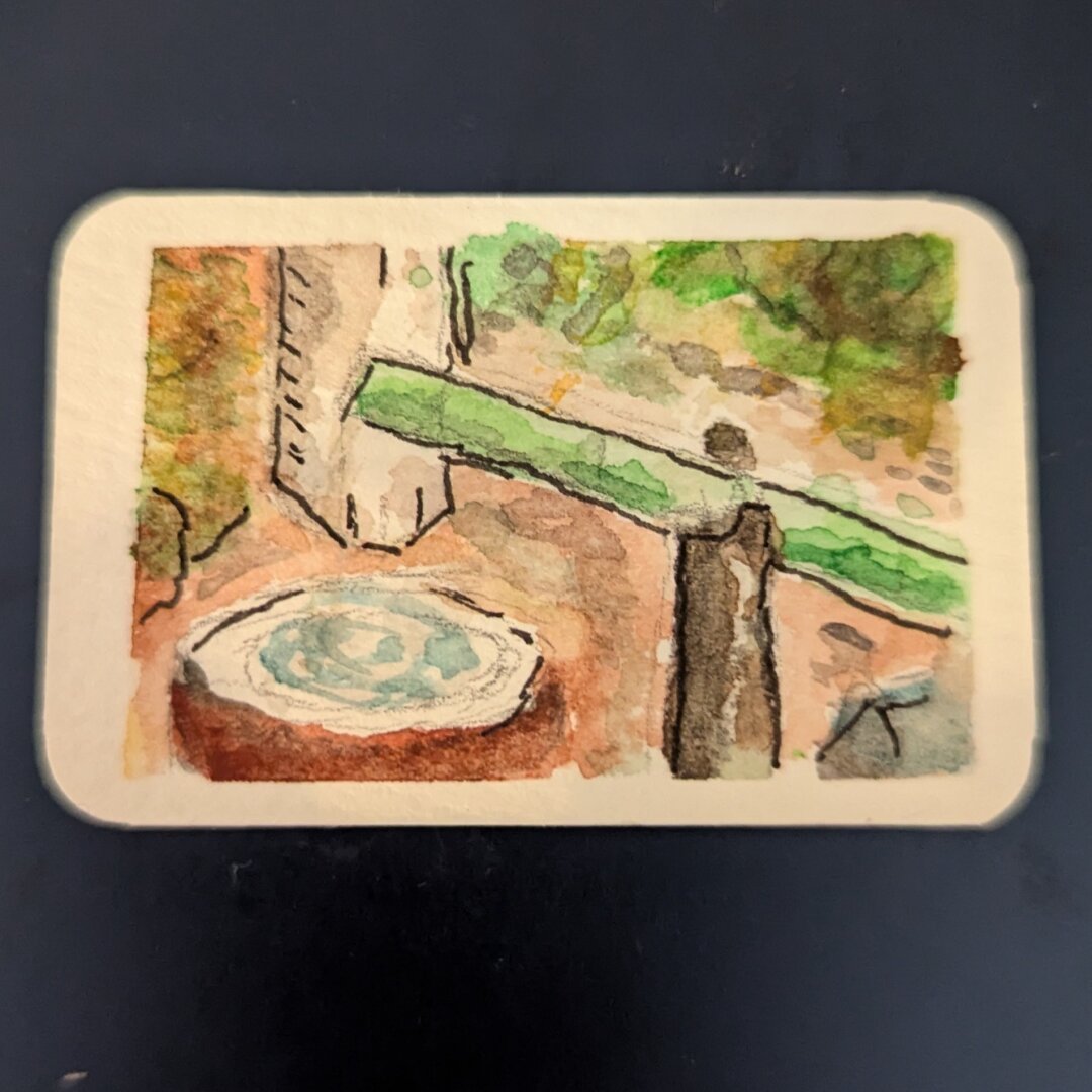 I blame Stephen Sondheim. This is an unnecessary hook to start this entry. As I chronicled in Finishing the Hat, my desire to create art again flared up. Along the path of trying to remember some watercolor techniques I discovered Leslie Stroz’ 100 Tiny Treasures challenge. It looks like there are a couple of these floating around and these kind of challenges are common. I remember Inktober was thing I didn’t do. Anyway, I discovered this video before Broadway Night and decided to do the challenge after Broadway Night, and I did. It did not start off well. You can see my effort in this PixelFed collection: